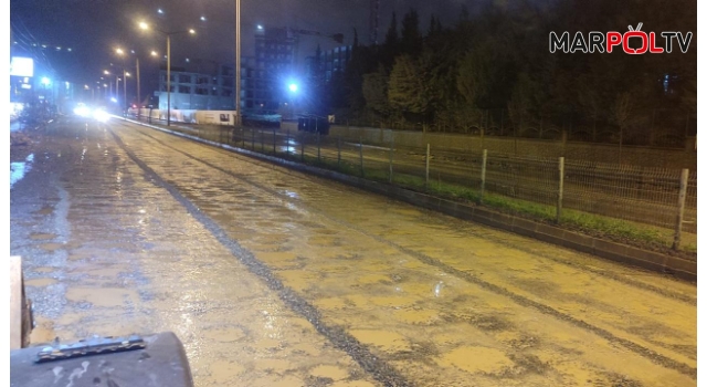 meydana gelen yol deformasyonları ve çökme risklerine karşı ekipler yoğun bir müdahale