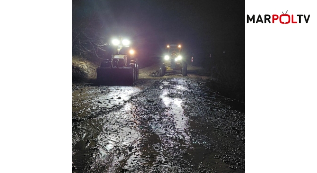 yağışların oluşturduğu olumsuzluklara karşı gece boyunca sahadaki çalışmalarını aralıksız