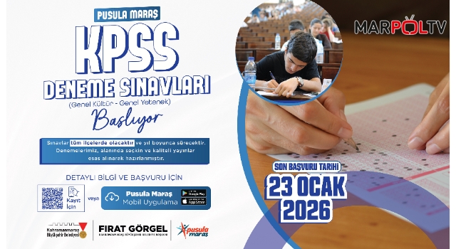 Ücretsiz deneme sınavlarına katılmak isteyen adaylar için başvurular başladı. Başvurular, Pusula Maraş mobil uygulaması üzerinden ya da https://kahramanmaras.bel.tr/duyuru/2025/12/31/kpss-deneme-sinavlari-basvuru-formu internet adresi aracılığıyla çevrimiçi olarak gerçekleştirilebiliyor. Son başvuru tarihi 23 Ocak 2026.