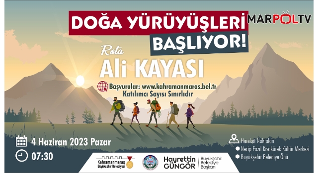Şehrin imar ve iskânı noktasında altyapıdan ulaşıma, üstyapıdan temizliğe tüm alanlarda çalışmalarını kesintisiz sürdüren Kahramanmaraş Büyükşehir Belediyesi, deprem sonrası hayatın normale dönmesi için de faaliyetlerine devam ediyor. Deprem öncesi her hafta rutin olarak düzenlenen ‘Doğa Yürüyüşleri’ tekrar başlıyor. Doğaseverleri buluşturacak etkinliğin ilk rotası, şehrin en önemli doğa güzelliklerinden Ali Kayası olacak. 4 Haziran Pazar günü gerçekleştirilecek etkinlikte katılımcılar, saat 07.30’da Necip Fazıl Kısakürek Kültür Merkezi ve Büyükşehir Belediyesi önünden hareket edecek. Sınırlı sayıda katılımcının yer alacağı yürüyüş programına başvurular 1 Haziran Perşembe günü saat 10.00 itibariyle Büyükşehir Belediyesi’nin internet sitesinden yapılabilecek. Büyükşehir Belediyesi’nden yapılan açıklamada, yürüyüş etkinliğine ve başvurulara ilişkin detaylı bilgiye 0553 041 53 53 numaralı WhatsApp danışma hattından ulaşılabileceği belirtild