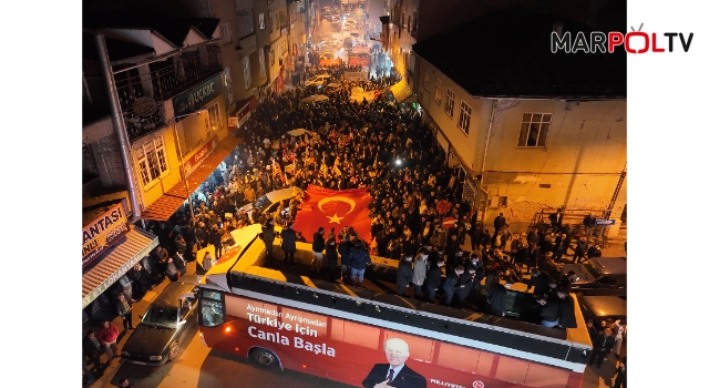 tezahüratları ve meşaleler eşliğinde Ayhan Taner Ekici Bulvarı, Cumhuriyet Caddesi ve