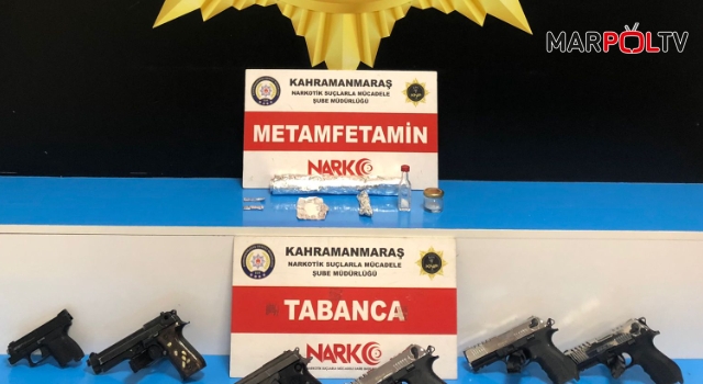 Emniyet Müdürlüğümüz Narkotik Suçlarla Mücadele Şube Müdürlüğü görevlilerince uyuşturucu madde satıcılarına yönelik gerçekleştirilen operasyonda; madde bağımlılarına uyuşturucu madde sattığı yönünde bilgi alınan T.B. ve O.B. isimli şüpheliler uyuşturucu alışverişi esnasında suçüstü yakalandı. Cumhuriyet Başsavcılığı koordinesinde şüphelilerin işyerlerinde gerçekleştirilen aramalarda şüphelilerden ele geçirilen uyuşturucu maddelerle aynı özelliklerde uyuşturucu maddeler ile 6 adet tabanca ele geçirildi.